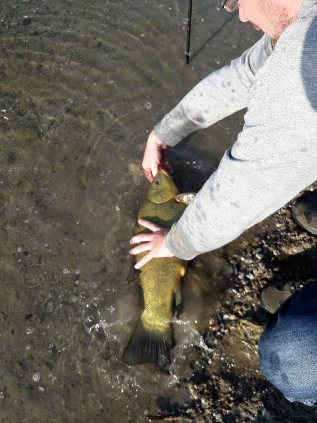 Eine riesige Schleie hatte sich den Karpfenköder eingesaugt.