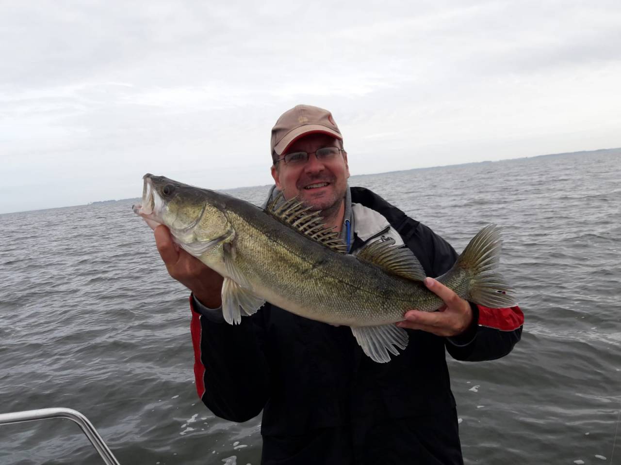 Auf Gummi fing er auch den ersten Zander der Tour (56 cm).