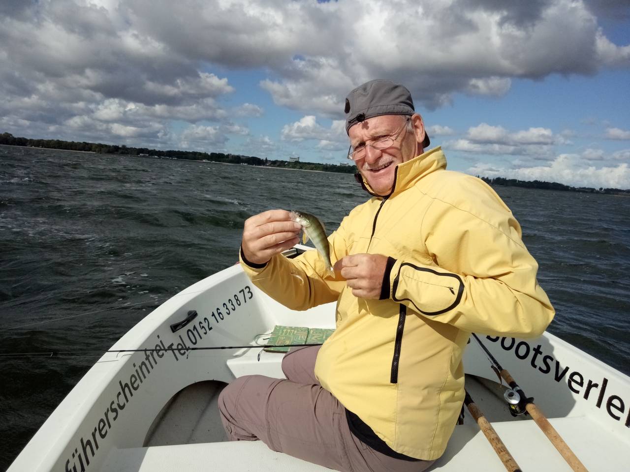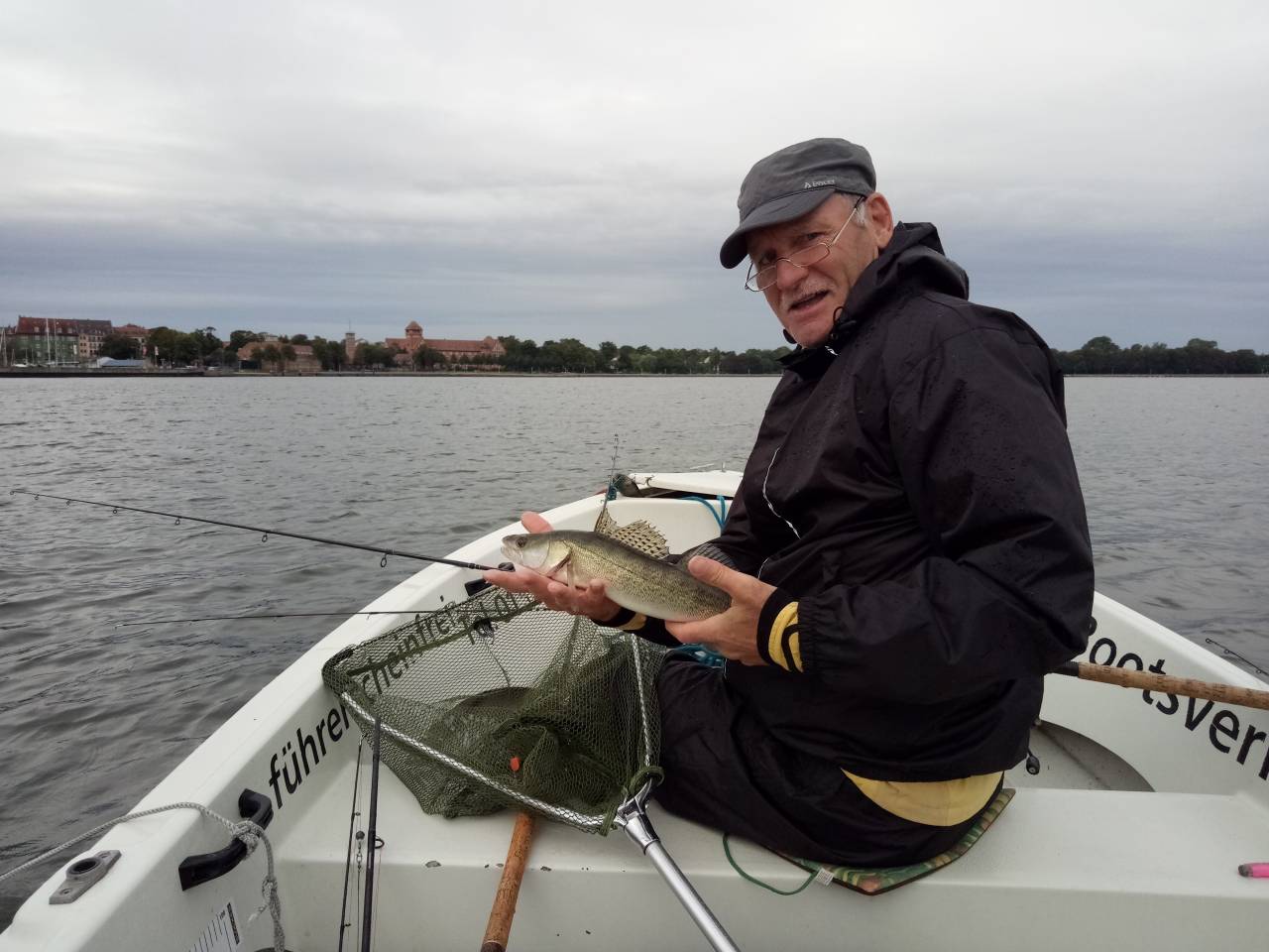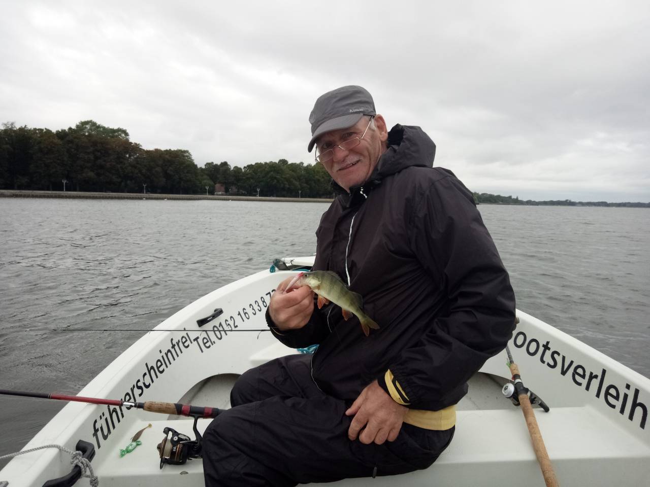 sehr zur Verwunderung der anderen Angler wie ein kleiner Junge Kaulbarsch.