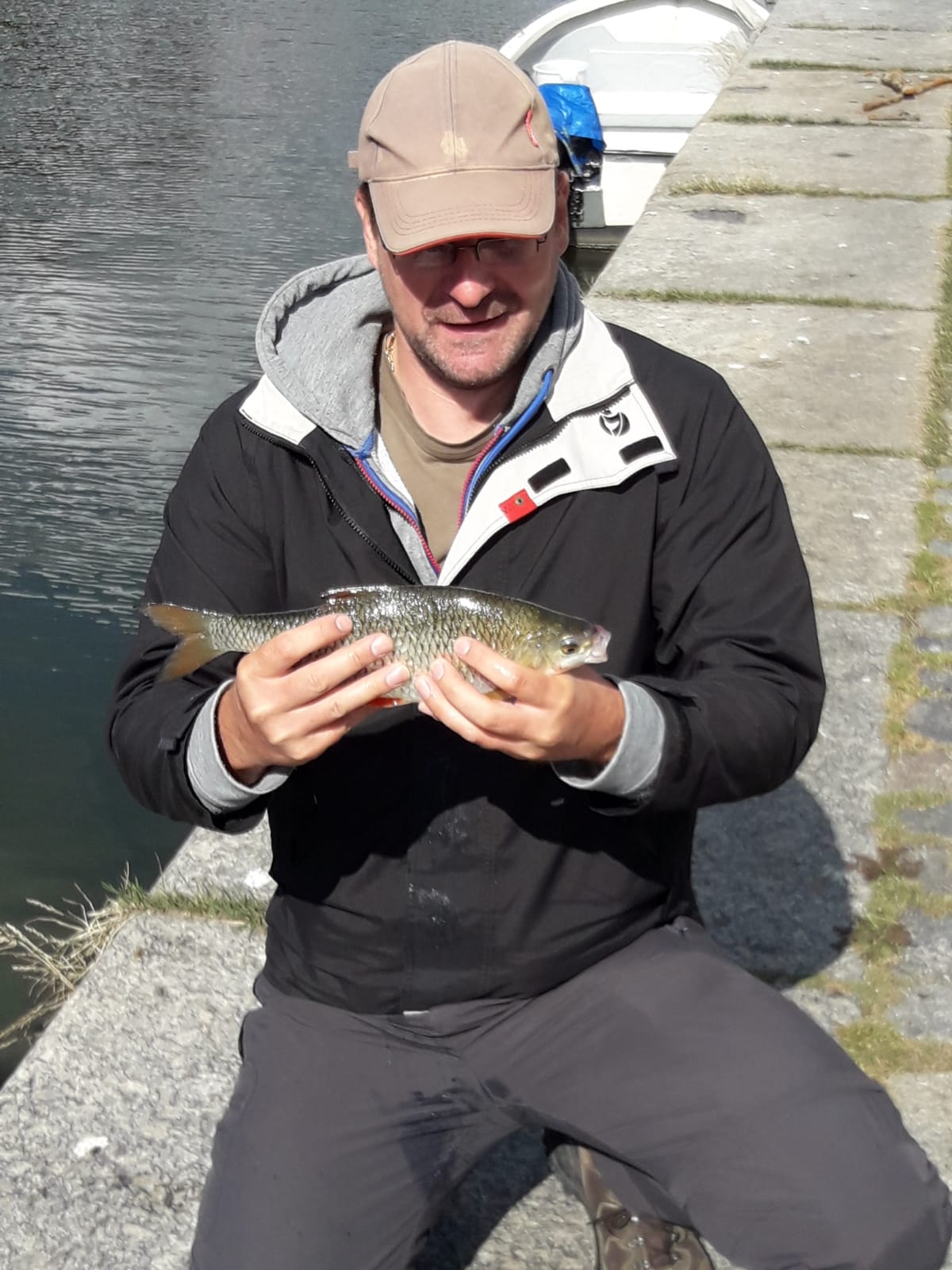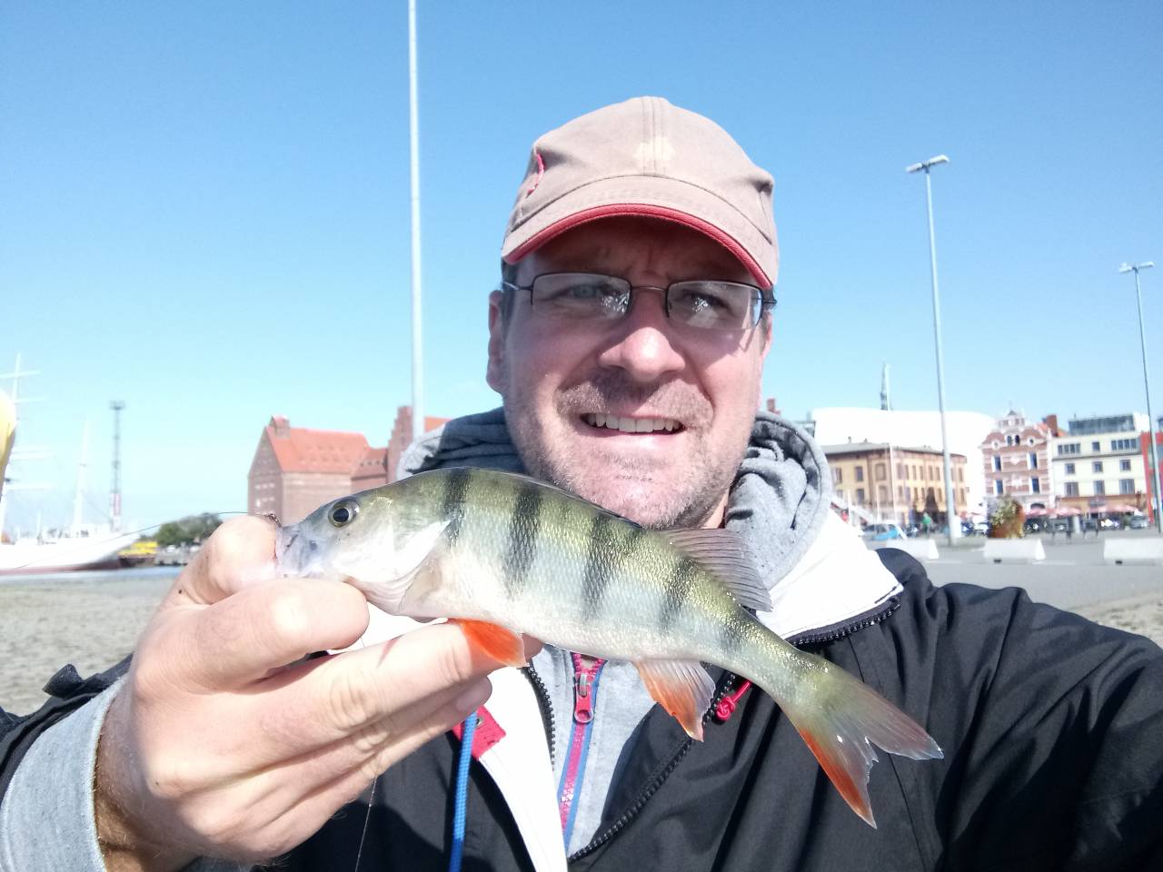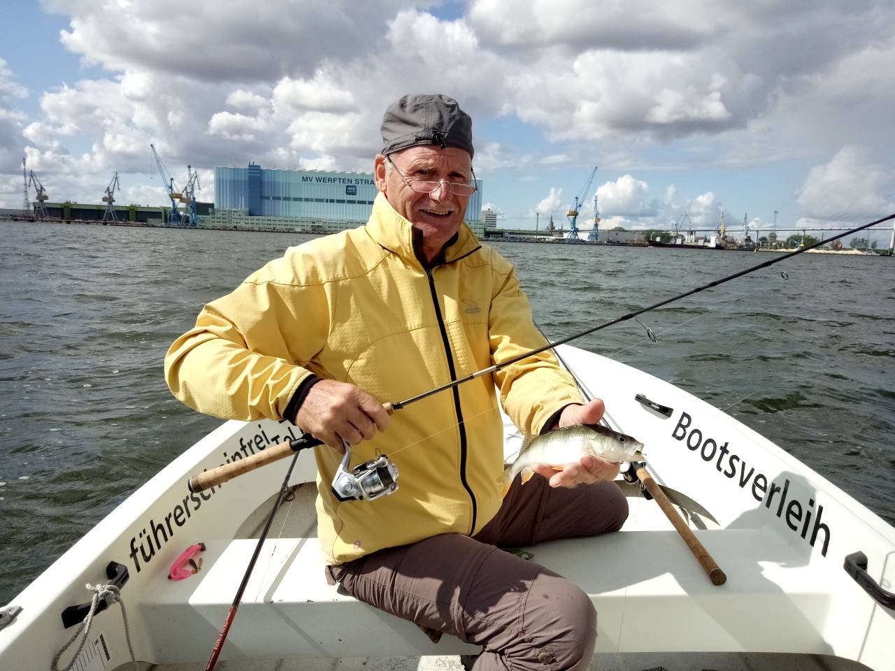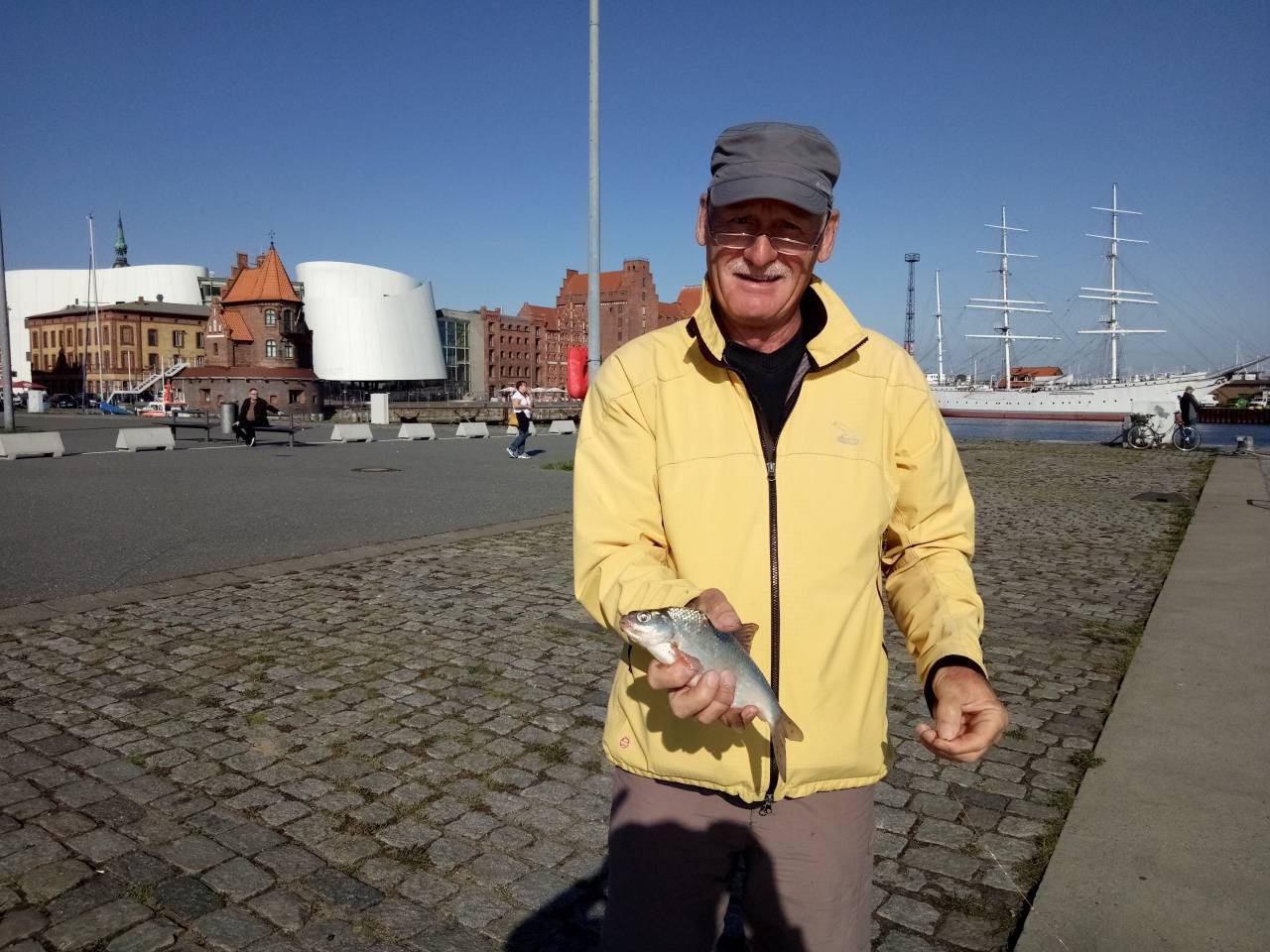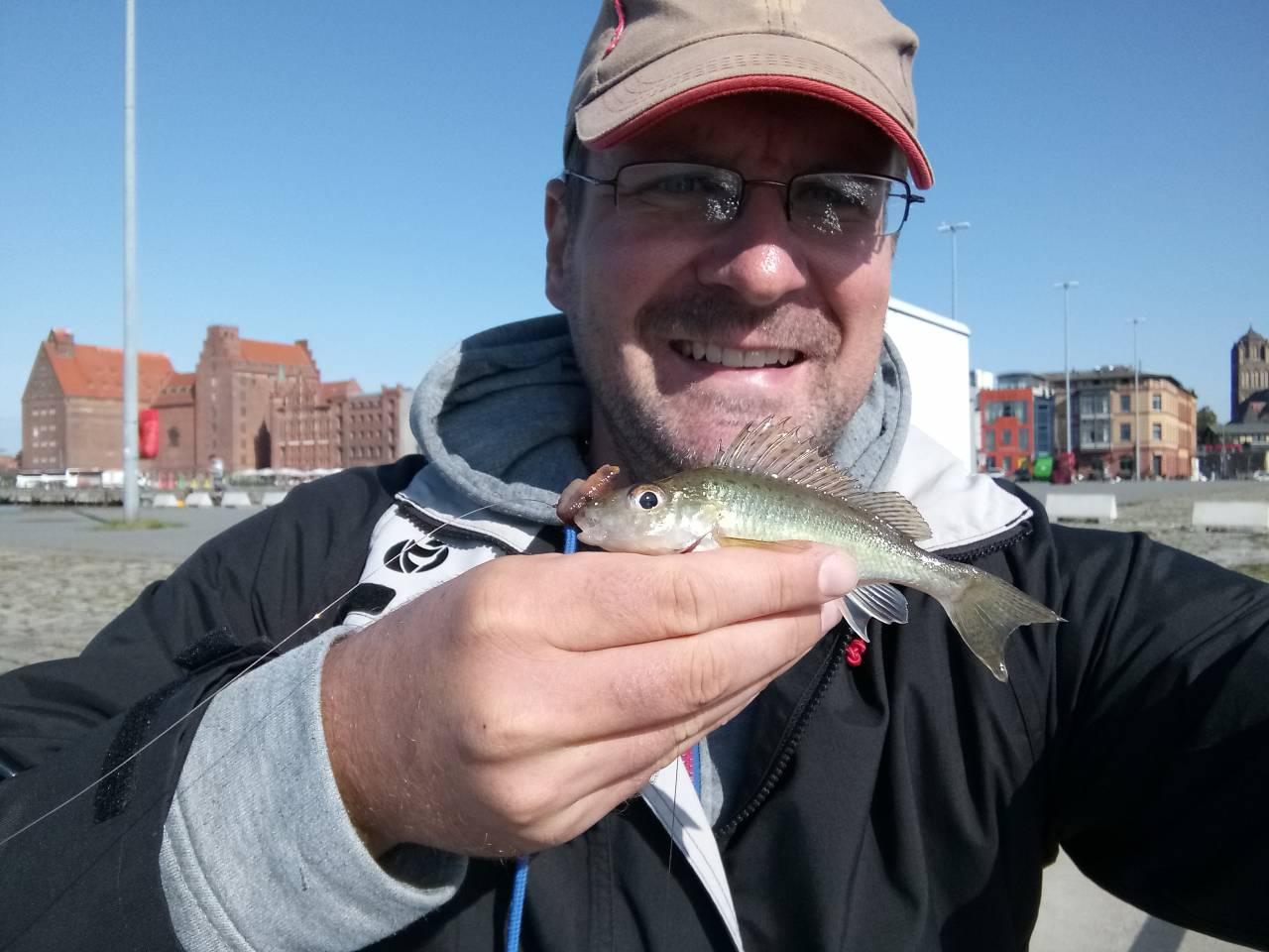 Wir beendeten unsere Hafentour mit einem Fischbrötchen und einem Rotauge für mich....