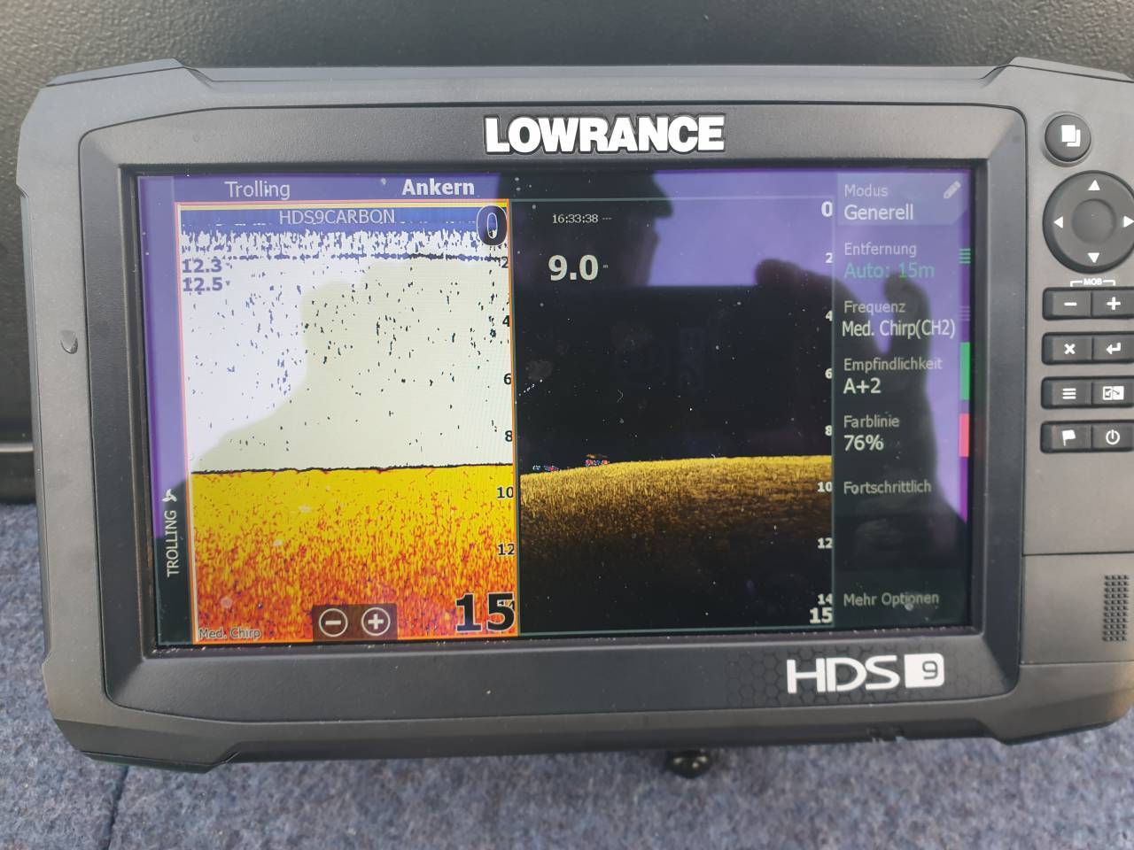 Nun kannst Du im 2D-Sonar überprüfen, ob ein Echo erscheint