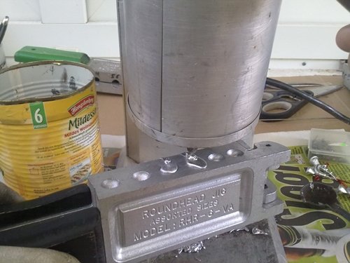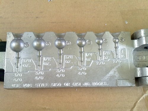 ABER ACHTUNG, wenn ihr wie wir hier im Bild nur zwei Hakengrößen bestückt haben.....bleiben die anderen natürlich leer, sonst läuft das Blei unten aus der Form wieder heraus  rofl.