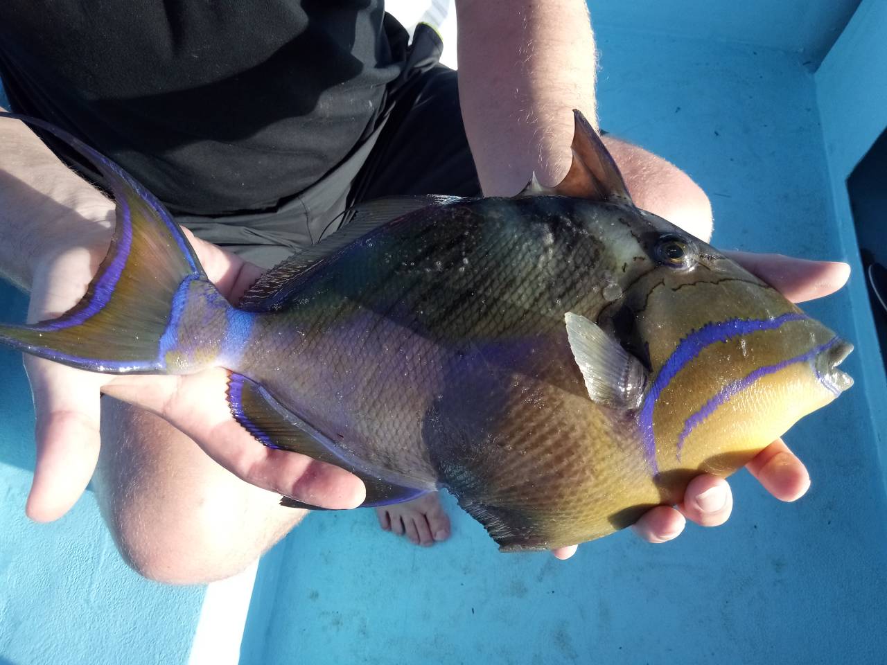 Ein grauer (gray) und ein königin (queen) Drückerfisch bereicherten meinen Angeltag.