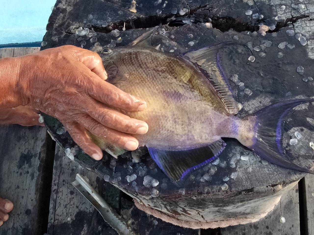 Wir nehmen etwas Fisch mit zum essen und verschenken den Rest an Freunde
