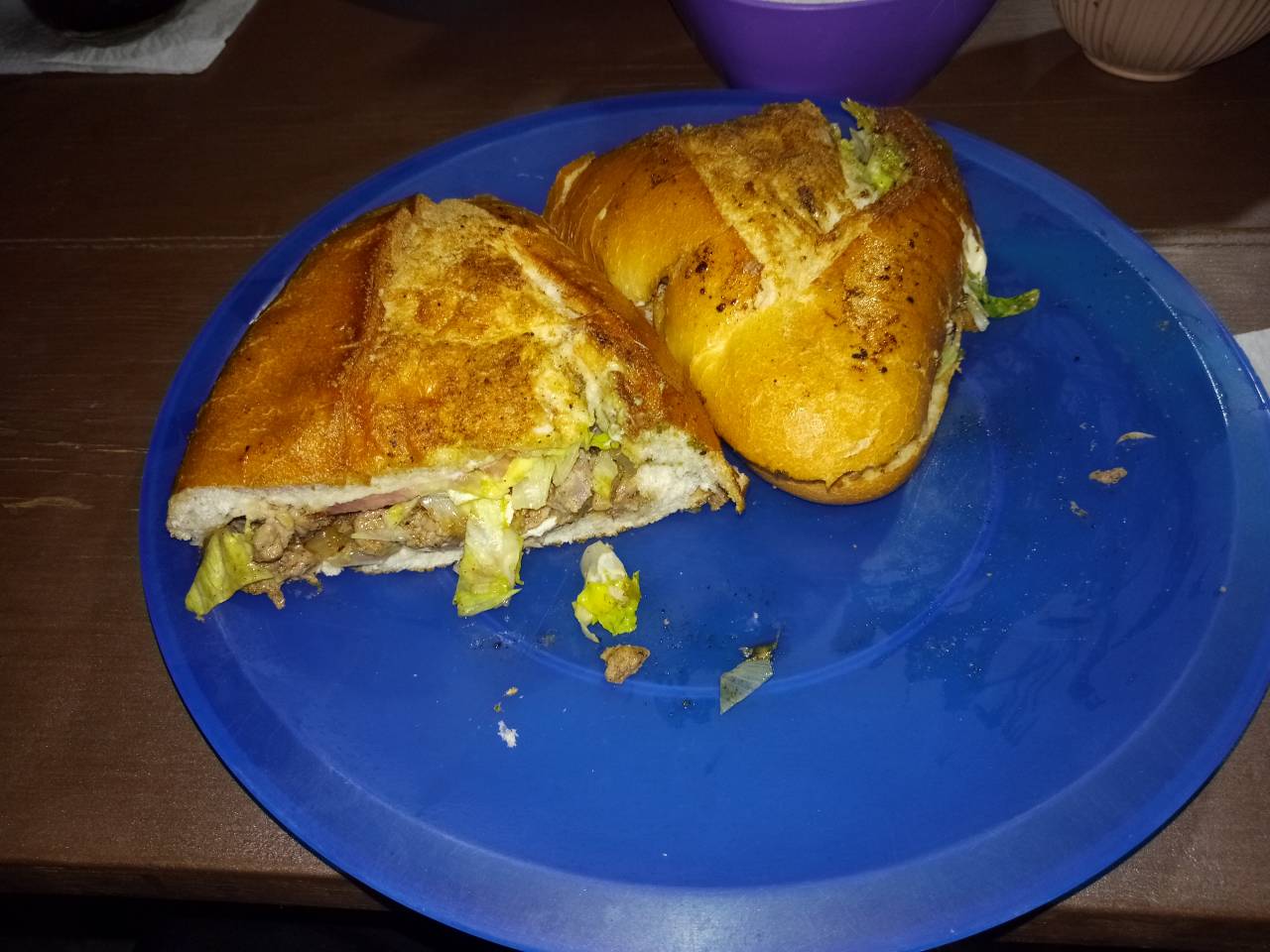 Zurück an Land gingen wir auf Amys Rat etwas essen. Rindersteak sandwich