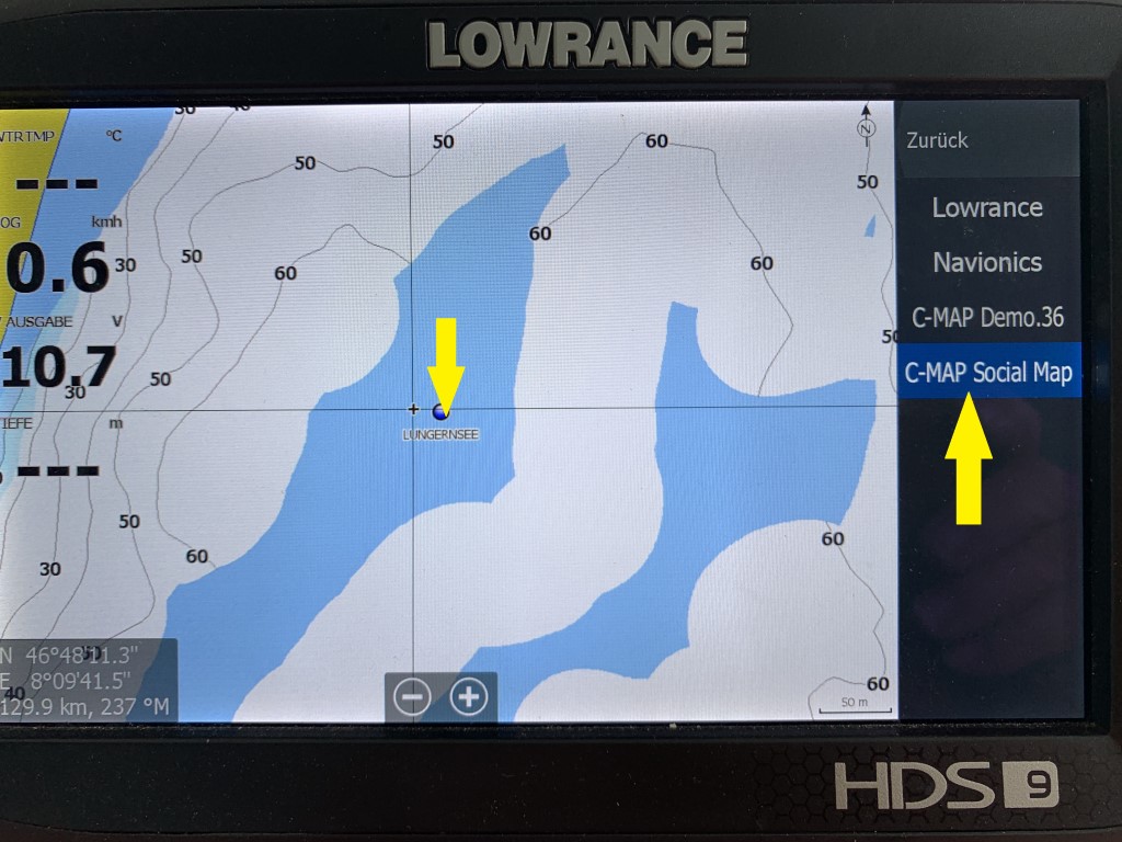 Aber wie bei Navionics sieht man bei Social Map den Gewässernamen nun im Sonarbild. Das sollte doch ausreichend sein.