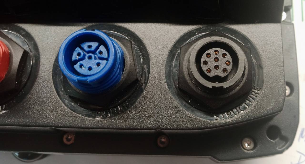 Und dann kommt noch erschwerend dazu, dass mein Freund noch den folgenden Adapter gekauft und installiert hatte, um den Geber mit dem Anschluss "Sonar" des HDS zu verbinden.